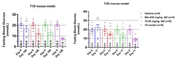 IHMT-MST1-58(化合物19)对STZ诱导的I型和II型糖尿病小鼠模型空腹血糖的影响